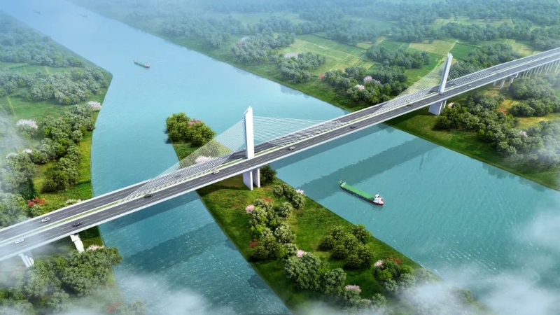 钦江特大桥施工现场全景图